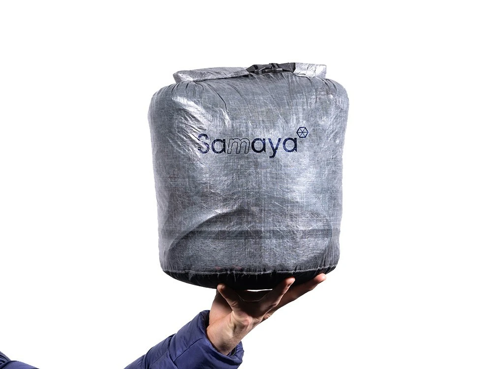 Une fois pliée, la Samaya Basecamp la tente peut être répartie dans 2 ou 3 sacs différents pour vous permettre de répartir la charge et l’encombrement.
